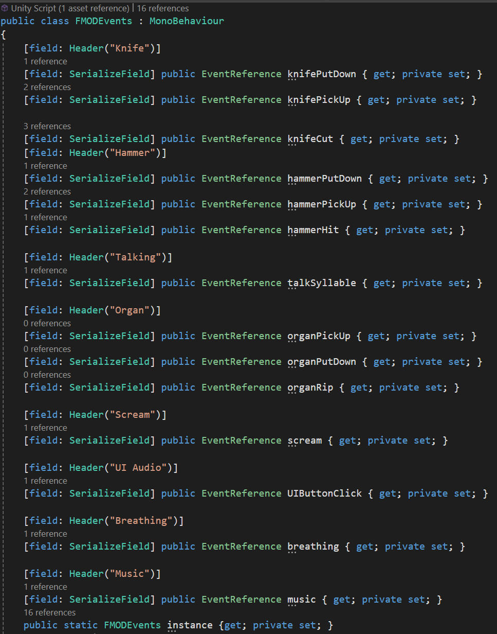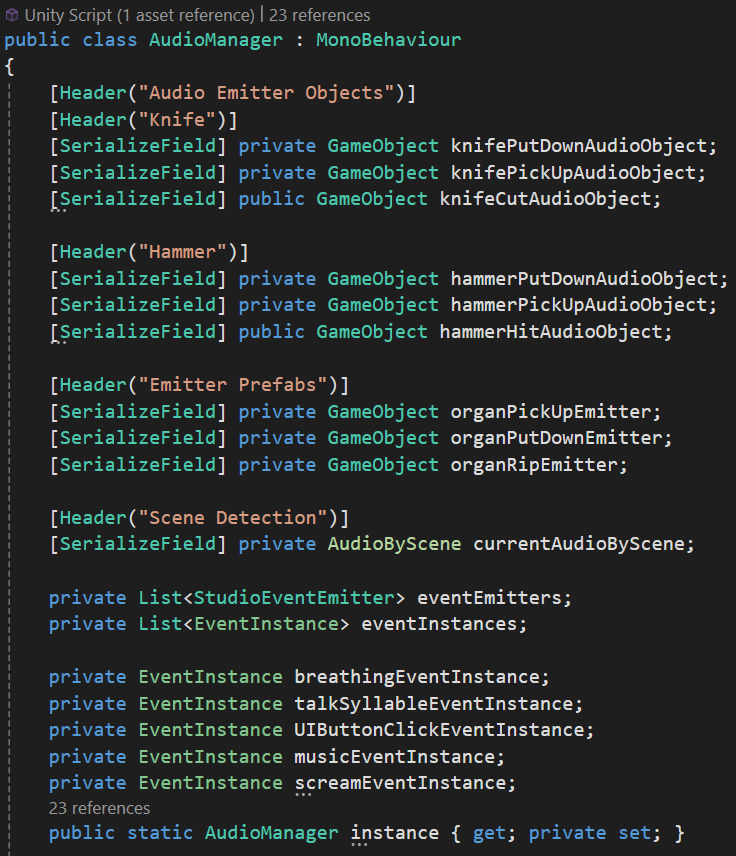 Created FMOD Events script to store all of the Events from FMOD, and Audio Manager that sets up functions to play those Events in the game.